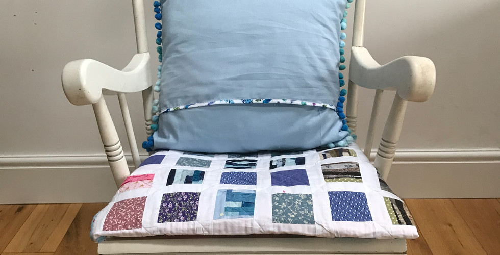 I had a tiny off cut of peacock fabric which was bound for the scrap basket, probably never to be seen again. I decided to see if I could use it as a very thin binding. I placed it right side down and only had enough to leave a very small seam allowance. I ironed this out, pressed another very small seam allowance and folded it over the edge of the fabric and sewed it very close to the edge. It was fiddly but turned out great! This would be easier with a bigger bit of fabric so have a rummage in your stash and see if you have any thing you can use if you don't have enough of your main fabric. You only need to do this on one of your backing pieces as the other will be hidden inside. Use the first method for the second piece.