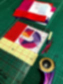 2. Cut 4 ½" strips of hot pink, red, green, turquoise, yellow and purple and then cut them in the following widths: