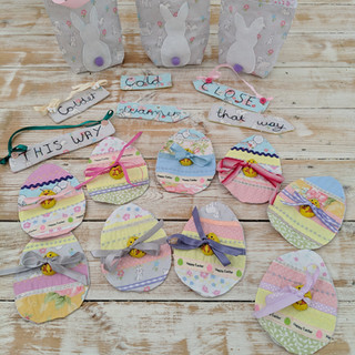 Being March birthdays, both my boys end up having birthdays around Easter. Which in my opinion is the best time to have a Birthday! Several years ago I bought some glittery eggs and hid them around the house for him and his friends to find. We decorated some paper bags with stickers so everyone could collect the eggs they found. They loved it! After a few hours of being battered by 2 year olds, they weren't much good for another use and my house was glittery for weeks. That got me thinking about an alternative and I thought up the idea of an egg hunting game that can be used year after year.