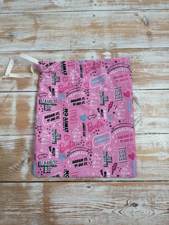 For Christmas this year I made my Niece's and Nephews some bags. The fun part is picking out the fabric that represents what is inside. I used some Barbie fabric for the Barbie clothes (patters coming soon) I made my Niece and some dinosaur and train fabric for my Nephews.